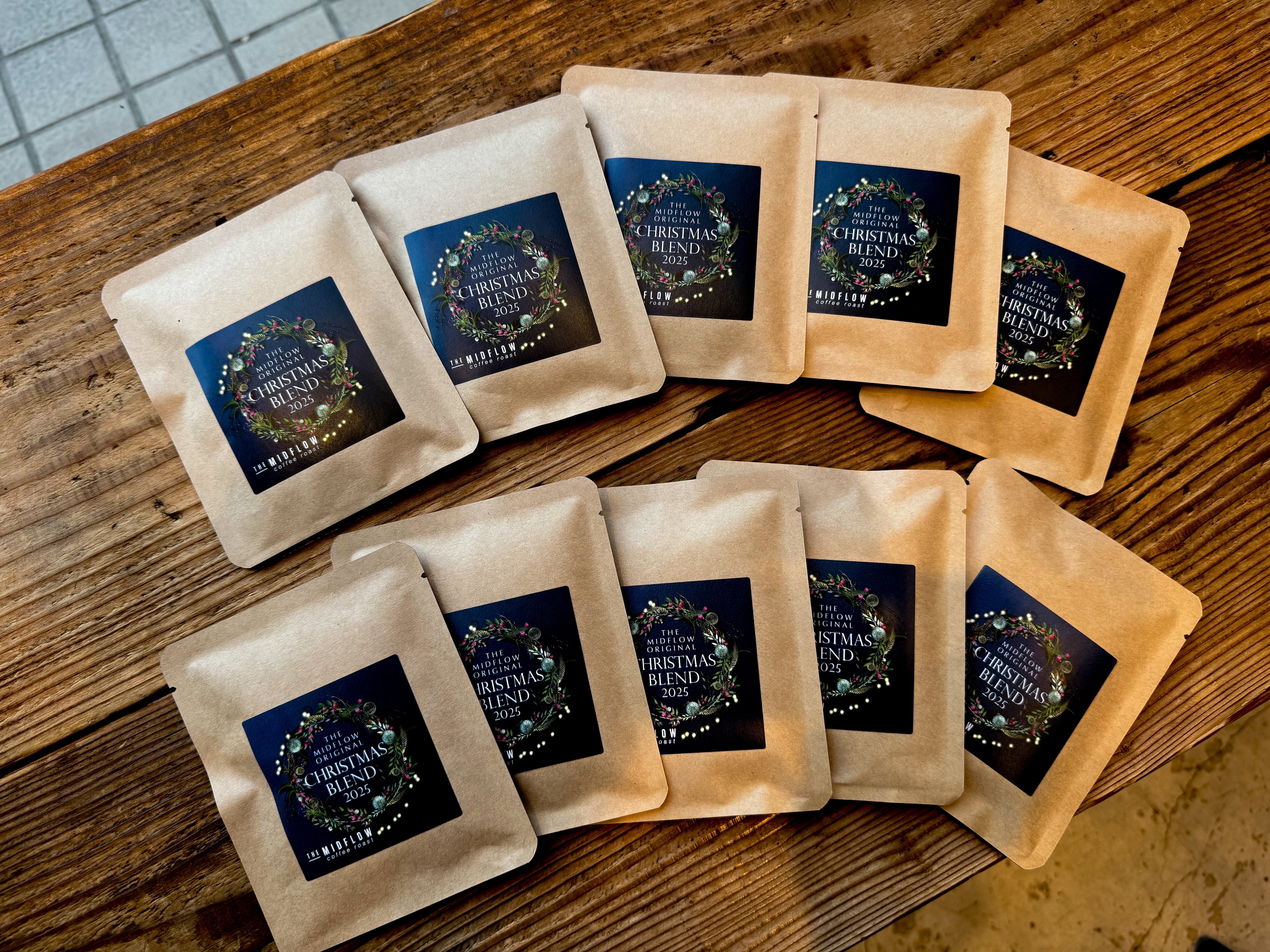インドネシア産のトップクラスのアラビカコーヒー豆と、THE MIDFLOWならではのベトナム産のハイクオリティのロブスタ豆をブレンドしています。両豆ともこのクリスマスブレンドのためだけの特別な焙煎具合を施し、さらに絶妙な比率でブレンドしています。